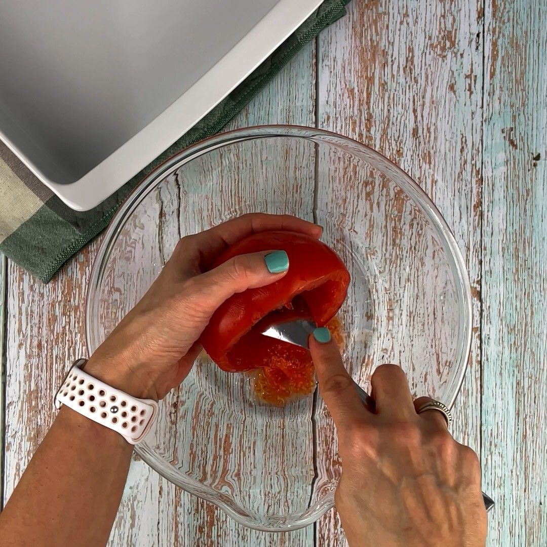 Using ripe tomatoes is recommended since it makes it easier to remove their flesh.