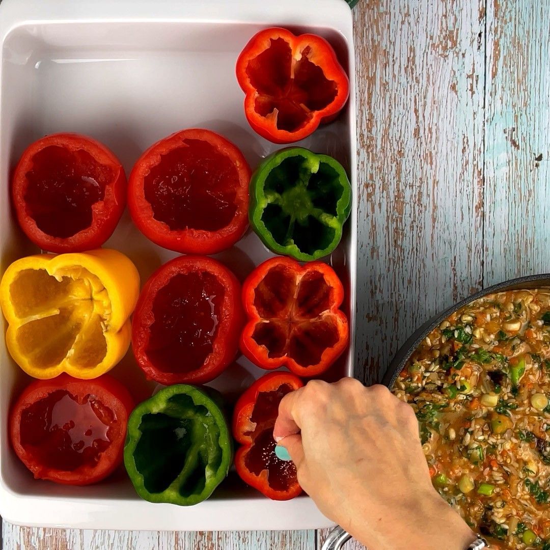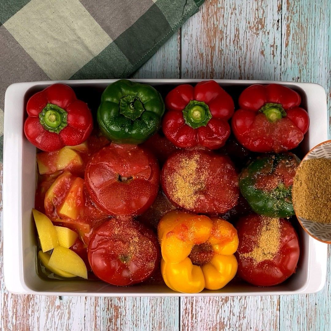 You may have some extra filling depending on the size of the vegetables. If that happens, you can wrap the filling in a piece of baking paper and bake it along with the vegetables.